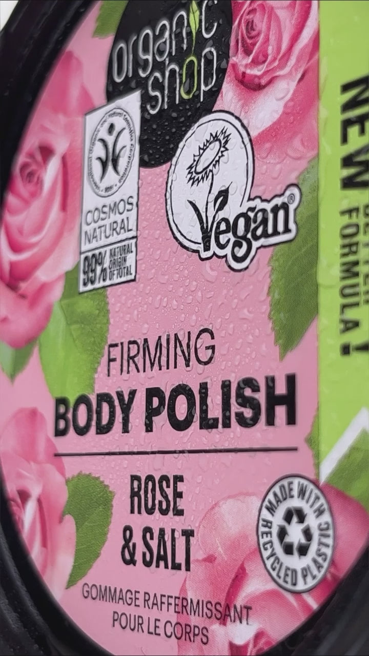 Organic Shop Rose & Salt Firming Body Polish 250ml – Vegan Exfoliating Scrub, Waterless Formula, COSMOS Certified, Natural Deep Cleansing for Smooth Skin