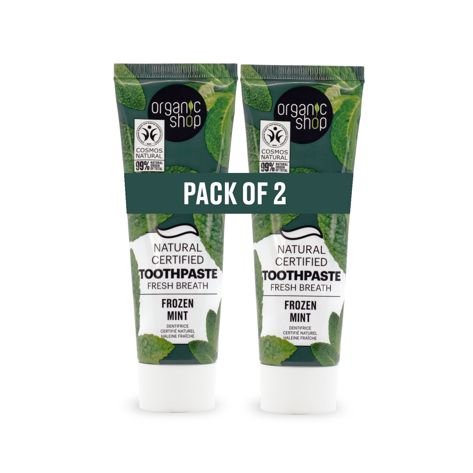 Organic Shop Frozen Mint Toothpaste, Natural Ingredients, Fluoride-Free, Tooth Sensitivity, Vegan & Cosmos Natural Certified. Pack of 2